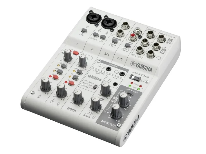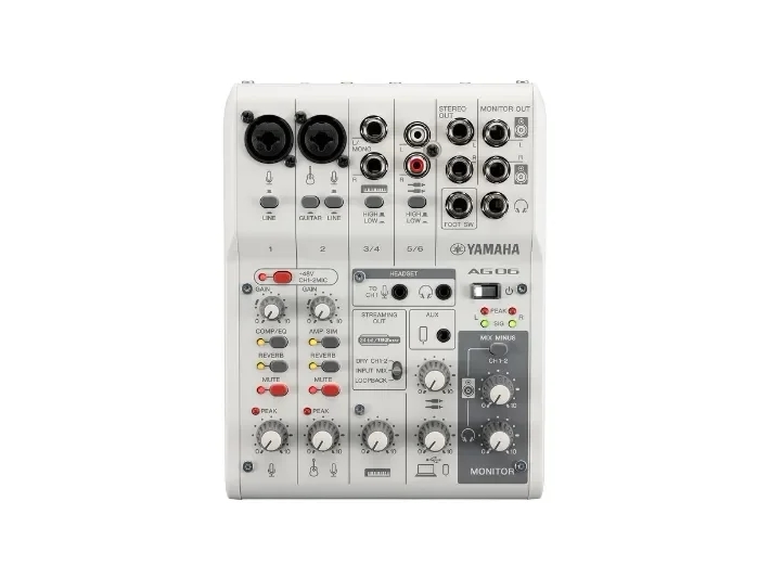 ה-AG06MK2 של Yamaha הוא מיקסר סטרימינג (6 ערוצים) עם כרטיס קול USB-C מובנה אשר תוכנן עבור יוצרי תוכן, סטרימרים ומוזיקאים הדורשים יכולת שידור והקלטה באיכות גבוהה, בשילוב עם קלות תפעול. זהו מיקסר קומפקטי המשלב ממשק אודיו USB-C מובנה, חיבורים גמישים ותכונות המעניקות לשידור צליל מקצועי עם שליטה מלאה על תהליך המיקס.