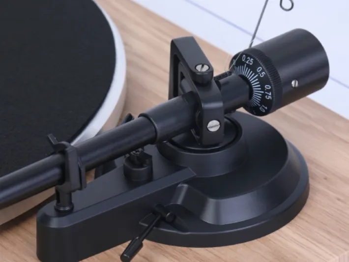בזרוע הפטיפון משולבים רכיבים מקצועיים חשובים: משקול איזון ומשקולת נגד החלקה (Anti-Skate). אלמנטים אלו מבטיחים מגע מדויק ועדין עם חריצי התקליט ומונעים שחיקה מוקדמת של מחט הפטיפון ושל התקליטים עצמם.